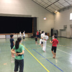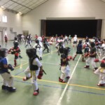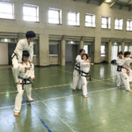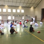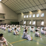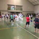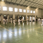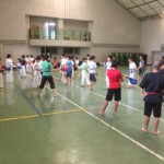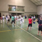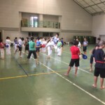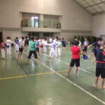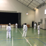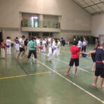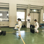 前半、力の入れ方や呼吸の基本を再確認しながら基本動作やトゥルの練習。